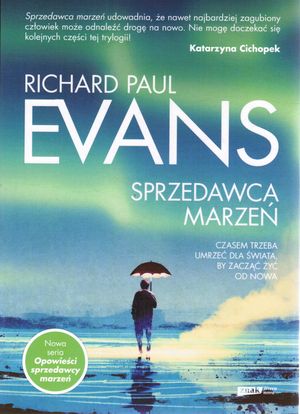 "Sprzedawca marzeń" to pierwsza część nowej trylogii Richarda Paula Evansa - opowieść o dążeniu do odkupienia win oraz o tym, co zrobił ktoś, kto dostał szansę, by zacząć życie od nowa. Czy ktoś, kto sprzedawał marzenia innym, będzie umiał odkupić własne? Z dzieciństwa Charles James pamiętał tylko agresję ojca, łzy matki i szukanie obiadu w śmietnikach. Jak każdy, kto jako dziecko dostał zbyt mało miłości, Charles pragnął, aby pokochał go cały świat. Gdy opuścił dom i zatrudnił się jako asystent znanego mistrza sprzedaży, chciał tylko pieniędzy, sławy i podziwu. Zdeterminowany, szybko piął się po szczeblach kariery, by wkrótce pokonać swojego mistrza i stanąć na szczycie. Wreszcie był szczęśliwy. Jednak czasem to, co bierzemy za szczęście, jest tylko jego iluzją. Nagle słynny sprzedawca marzeń zaczął doświadczać rzeczy, które zachwiały jego idealnym życiem. Najpierw pojawił się zły sen. Później ktoś przypomniał mu o krzywdach wyrządzonych innym. A później zdarzyło się jeszcze coś i Charles w jeden dzień stracił wszystko. Lecz tym razem los był dla niego mniej bezwzględny, niż on sam był dla innych. Dał mu drugą szansę.[empik].