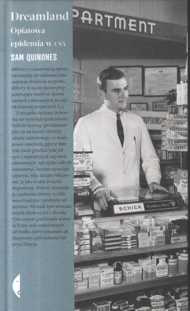 W 2008 roku w USA liczba zgonów w wyniku przedawkowania opiatów przewyższała liczbę ofiar wypadków samochodowych. Osób uzależnionych od leków z roku na rok jest coraz więcej, a rynek farmaceutyczny rośnie w siłę. Jak to możliwe, że legalnie dopuszczona do sprzedaży tabletka przeciwbólowa może doprowadzić do epidemii uzależnień? Sam Quinones drobiazgowo rekonstruuje dzieje tej opiatowej katastrofy. Z jednej strony rzetelnie przedstawia kolejne etapy wprowadzania niebezpiecznych leków do regularnej sprzedaży i pokazuje przeraźliwie krótką drogę od ukojenia bólu do nałogu, z drugiej zaś wprowadza nas w świat meksykańskich sprzedawców „czarnej smoły”, którzy korzystając z plagi uzależnień od opiatów, zajęli się sprzedażą heroiny, dostarczając ją pod drzwi narkomanów niczym dostawcy pizzy. Szefowie koncernów farmaceutycznych, dilerzy, policjanci, narkomani, rodzice tych, którzy przegrali z nałogiem. Bohaterów Dreamland jest wielu i to ich historie składają się na wstrząsająca opowieść o problemie, wobec którego Ameryka okazuje się bezradna.