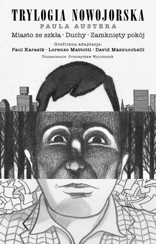 Klasyczne dzieło Paula Austera w nowej odsłonie! Szklane miasto, Duchy i Zamknięty pokój – trzy opowieści o samotności, zagubieniu i poszukiwaniu tożsamości, przełożone na język komiksu przez wybitnych artystów: Davida Mazzucchelliego. Lorenzo Mattottiego i Paula Karasika. Mroczna, wciągająca podróż po labiryncie Nowego Jorku, w której czarny kryminał spotyka egzystencjalny dramat. Komiks dla czytelników, którzy cenią ambitne powieści graficzne. Jedna z najlepszych komiksowych adaptacji literatury w historii.