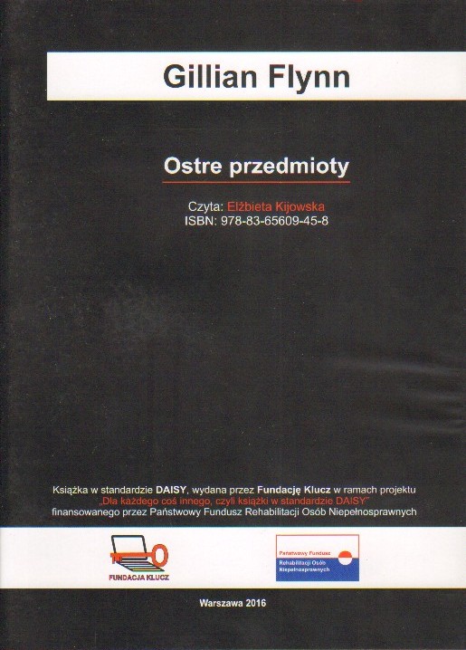 Ostre przedmioty / Gillian Flynn. - Warszawa : Fundacja Klucz, 2016. - 1 płyta audio (CD) (11 godz. 17 min) : dygital, stereo. ; 12 cm.