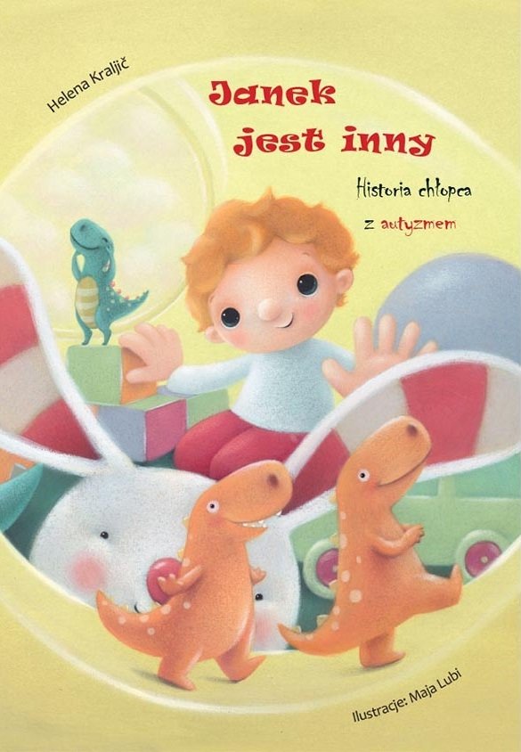 Bajka “Janek jest inny” to opowieść o chłopczyku, który cierpi na autyzm. Autyzm to schorzenie, które nie jest jeszcze dobrze rozpoznane. Dzieci z autyzmem mają problemy z funkcjonowaniem w grupie, mają swój zamknięty świat w którym czują się bezpiecznie. Mają trudności z komunikacją, drażnią je różne dźwięki, nagłe zmiany otoczenia. W naszej opowieści opisane są losy chłopczyka o imieniu Janek. Poznajemy jego chorobę, widzimy miłość rodziców oraz rodzeństwa. Janek jest dzielnym chłopcem, który żyje w swoim świecie ale równocześnie okazuje się, że jest obdarzony wieloma zdolnościami, wystarczy je tylko z niego wydobyć. Po pewnym czasie rówieśnicy dostrzegają jaki ma w sobie potencjał. Okazuje się, że chłopczyk ma nieprawdopodobne zdolności matematyczne, wspaniale rysuje, wspaniale buduje z klocków. Książeczka ta zachęca nas do głębszego poznania tej choroby oraz zmusza do zastanowienia się jak pomóc dzieciom, które muszą z nią żyć.