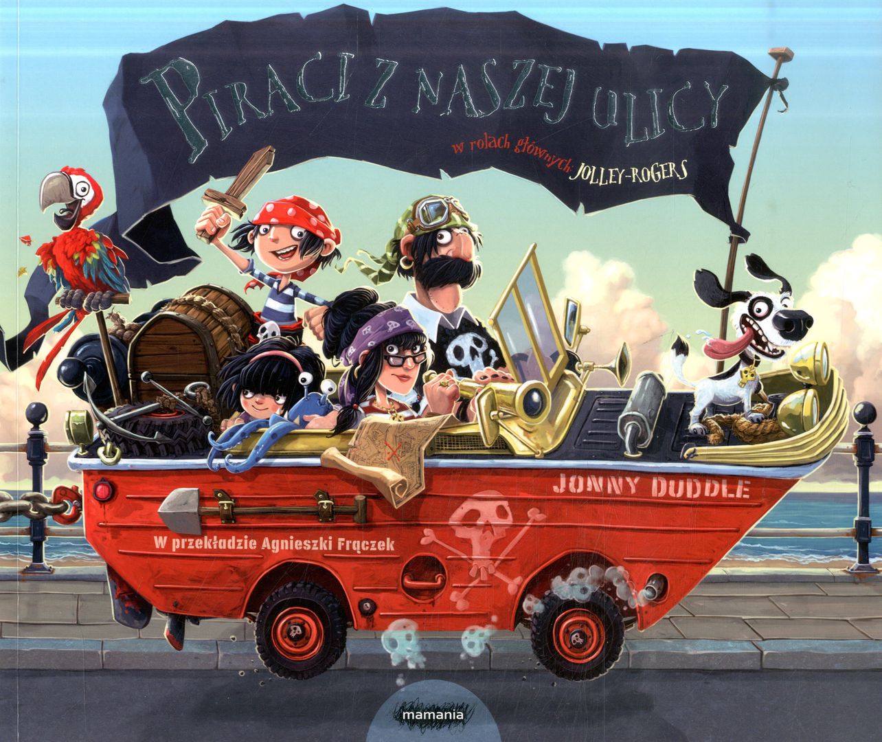 Uwaga, szczury lądowe, nadciąga piracka rodzina Jolley-Rogers!Jonny Duddle, znakomity rysownik i autor książek, zaprasza do pełnego humoru i zabawnych przygód świata piratów. Oto Jolley-Rogers, piracka rodzina, która zmuszona jest opuścić morze i na czas remontu ich statku zamieszkać w sennej, nadmorskiej miejscowości. Wszyscy sąsiedzi od razu zaczynają plotkować o nowych mieszkańcach, posądzając ich o najgorsze wyczyny i najciemniejsze sprawki. Czy rzeczywiście są tak okropni? Mała Matylda jest innego zdania…