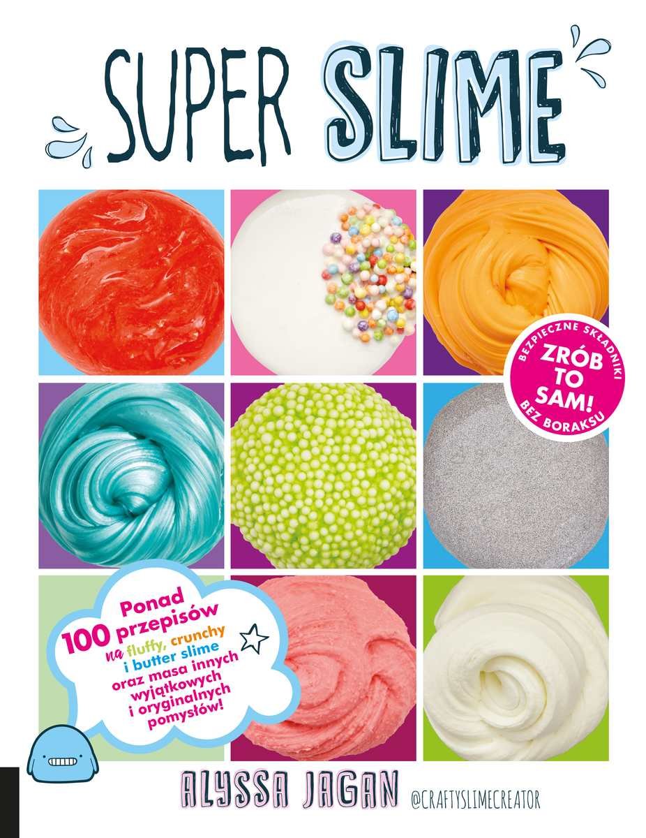 Cały świat oszalał na punkcie Slime! Instagram i YouTube wypełniony jest filmikami o zawrotnej liczbie odsłon prezentującymi Slime’y! Hashtag #slime pojawia się przy milionach postów w mediach społecznościowych! Dzieci i młodzież kochają robić Slime’y i dzielić się efektami. Slime to masa domowej roboty w różnych kolorach i o różnej strukturze. Tworzy się ją samemu i formuje z niej przeróżne kształty. To doskonała zabawa i kreatywna forma spędzania wolnego czasu dla dzieci i młodzieży, a często także ludzi dorosłych. Slime pomaga pozbyć się stresu, jest też formą eksperymentu i domowego laboratorium. Można robić masy puszyste (fluffy slime), brokatowe (glitter slime), tęczowe (rainbow slime) czy emitujące strzelające dźwięki (crunchy slime) oraz wiele, wiele innych. Teraz ty także możesz zacząć swoją przygodę ze slime lub rozwijać swoje umiejętności! W książce "Super Slime" znajdziesz wszystko co niezbędne, aby kreować własny kolorowy i plastyczny świat! To ponad 100 łatwych i oryginalnych przepisów na samodzielne wykonanie slime’ów w domu. Proste, ogólnodostępne, tanie i bezpieczne składniki - jak mąka, klej, brokat czy pianka do golenia sprawiają, że każdy jest w stanie wykonać je samodzielnie na dziesiątki sposobów poczynając od najprostszych i najpopularniejszych po najbardziej fantazyjne i wyrafinowane projekty. Autorka książki Alyssa Jagan znana jako @craftyslimecreator to 16-letnia niezwykle popularna twórczyni Slime, której profil na Instagramie śledzi prawie milion fanów. Baw się barwą i formą, twórz i dołącz do klubu super slime!