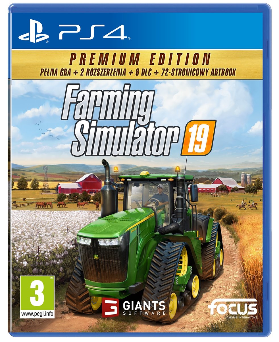 Zagraj w najbardziej realistyczną symulację gospodarstwa! Zostań nowoczesnym rolnikiem i rozwiń swoją farmę w trzech amerykańskich lub europejskich środowiskach, gdzie czeka wiele nowych, ekscytujących zajęć. Poprowadź ponad 475 pojazdów i maszyn wiodących marek, takich jak Case IH, New Holland, CLAAS, Challenger, Fendt, Massey Ferguson, Valtra, Krone, Deutz-Fahr i nie tylko. Rozwijaj swoją farmę online z innymi graczami i pobierz stworzone przez społeczność mody, zwiększając funkcjonalność i zawartość gry. Edycja Premium zawiera kultową grę Farming Simulator 19, oraz następujące dodatki i rozszerzenia: Wyjątkowy drukowany 72-stronicowy artbook wprowadzający wszystkich nowych graczy w świat Farming Simulator 19, Alpine Farming Expansion, Kverneland & Vicon Equipment Pack, Bourgault DLC, Platinum Expansion, John Deere Cotton DLC, Anderson Group Equipment Pack, John Deere XUV865M Gator DLC, HOLMER Terra Variant DLC, CLAAS DOMINATOR 108 SL MAXI DLC, CLAAS TORION 1914 Dev Mule DLC.